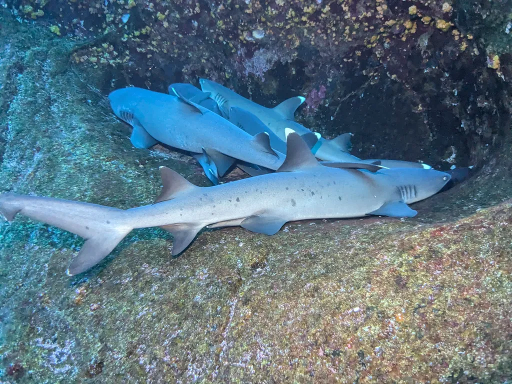 白鳍礁鲨极其恋家,活动范围很小。它们经常日复一日地回到同一个洞穴,持续数月甚至数年。如果你在一个特定的地方看到一条在休息,明年再来看看——它可能还在那儿。