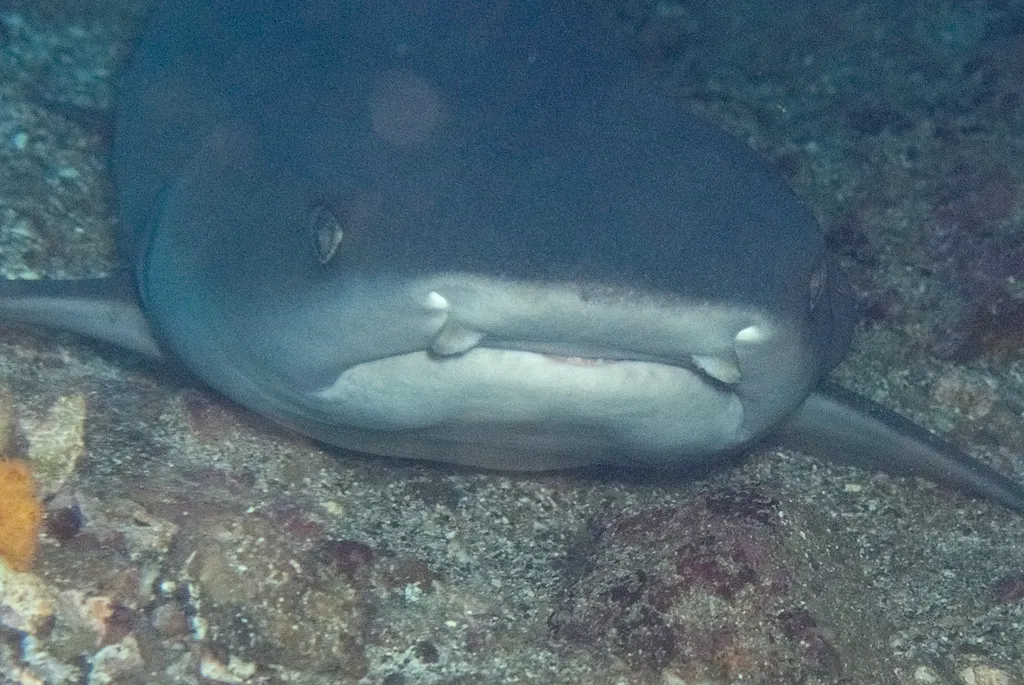 白鳍礁鲨是典型的珊瑚礁常驻民——如果你看到一条鲨鱼在沙地或岩架下打盹,八成就是它。 凭借修长的身体和鳍上的白尖很容易辨认,它是极少数能停止游动并趴在海底休息的真鲨之一。 虽然白天看起来睡眼惺忪,但一到晚上它们就变成无情的猎手,利用灵活的身体钻入狭窄的珊瑚缝隙, 去抓那些其他鲨鱼够不着的猎物。它们简直是鲨鱼界的“雪貂”,专门把猎物从藏身洞里掏出来。