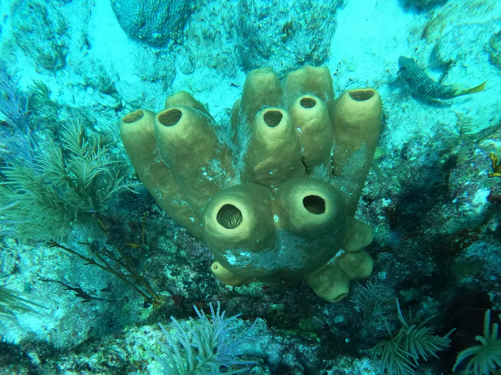- Associated Life: Look for small fish, shrimp, and other creatures hiding inside or around sponges.